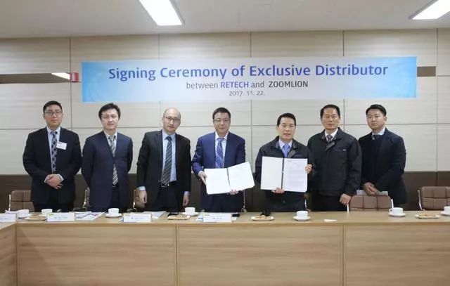 ▲中聯(lián)重科與RETECH公司共同簽署韓國(guó)ZTF250上裝代理協(xié)議