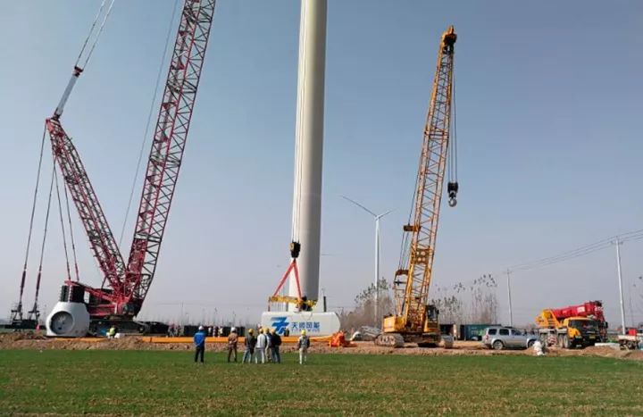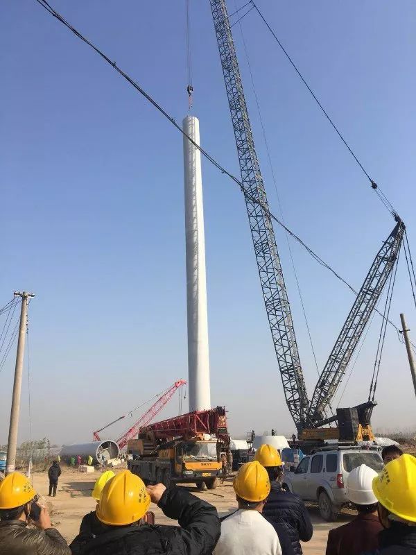 12月份的山東菏澤氣溫低至3℃,在李村鎮(zhèn)風(fēng)電場,一臺臺風(fēng)機聳立空中隨風(fēng)轉(zhuǎn)動,為寒冷的冬天增添了幾分活力。不遠處兩臺三一SCC6500A有條不紊地進行著風(fēng)機吊裝的施工。