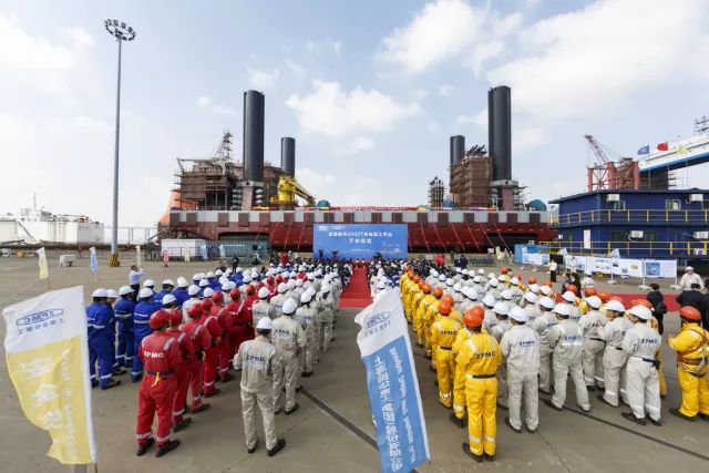 近日,2000 T風電安裝平臺在海工平臺事業(yè)部舉行下水儀式。該平臺是由振華重工自主研發(fā)、設(shè)計、制造的集大型設(shè)備吊裝、風電設(shè)備打樁、安裝于一體的風電安裝平臺。