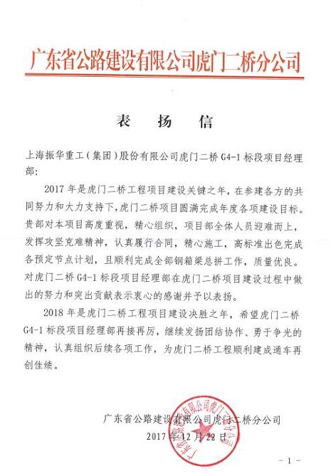 令人振奮的是,在項(xiàng)目部向各方進(jìn)行總結(jié)匯報(bào)時(shí),虎門二橋分公司李總當(dāng)場(chǎng)宣讀了業(yè)主的表揚(yáng)信,對(duì)上海振華G4-1合同段項(xiàng)目部在虎門二橋建設(shè)過程中做出的努力和突出貢獻(xiàn)給予表揚(yáng)。