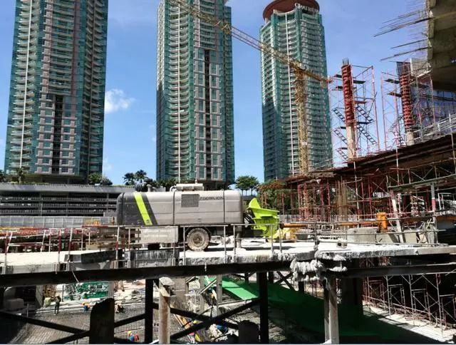 ▲中聯(lián)重科塔機與拖泵在泰國施工