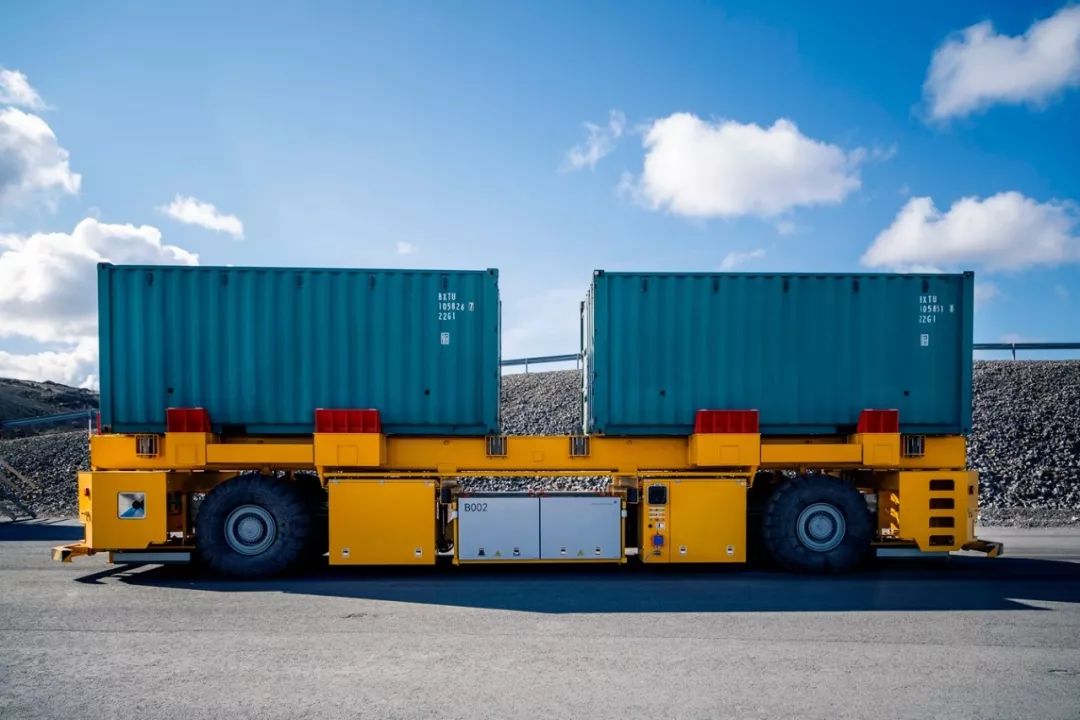 卡爾瑪新型全電動(dòng)自動(dòng)化引導(dǎo)車(AGV)正在搬運(yùn)著集裝箱