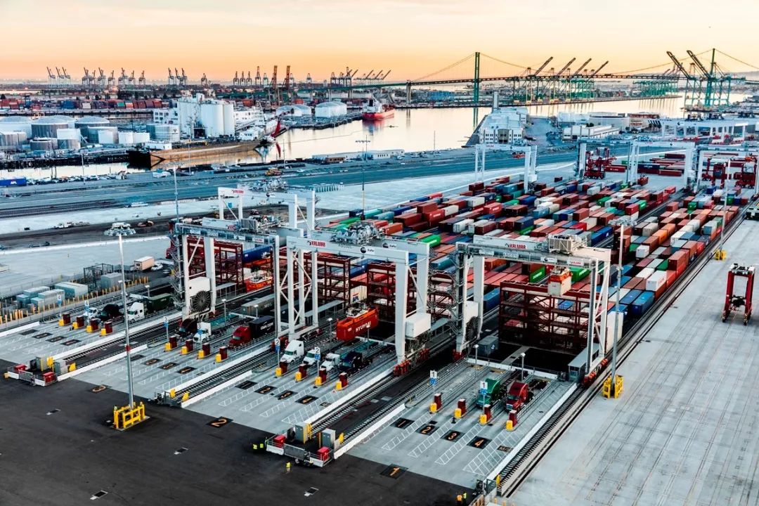 卡爾瑪設(shè)備正在TraPac洛杉磯港忙碌有序地搬運(yùn)著集裝箱