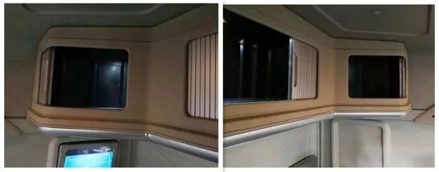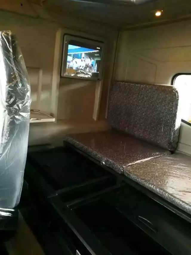 駕駛室非常寬敞,車內(nèi)超寬的折疊式沙發(fā)臥鋪大床給人以極佳的舒適感,上方超大面積的儲(chǔ)物柜可以滿足各種儲(chǔ)存需求,車載微波爐、車載電冰箱讓司機(jī)能夠隨時(shí)隨地享用新鮮美食,17寸液晶電視讓旅途生活輕松愜意,還有智能車載終端、純平地板……不愧為國內(nèi)首個(gè)“房車級(jí)重卡”!