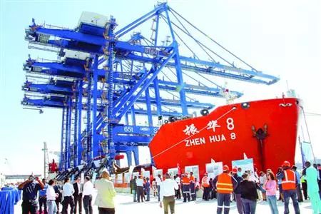 中國(guó)駐納米比亞大使張益明說(shuō),這些岸橋不僅是港口建設(shè)的關(guān)鍵,也標(biāo)志著集裝箱碼頭即將完成,沃爾維斯灣港將成為西南非洲大西洋沿岸的一顆耀眼明珠。期待著納米比亞可以以沃爾維斯灣港擴(kuò)建為契機(jī)廣泛參與“一帶一路”建設(shè),搭上中國(guó)發(fā)展的“便車(chē)”。