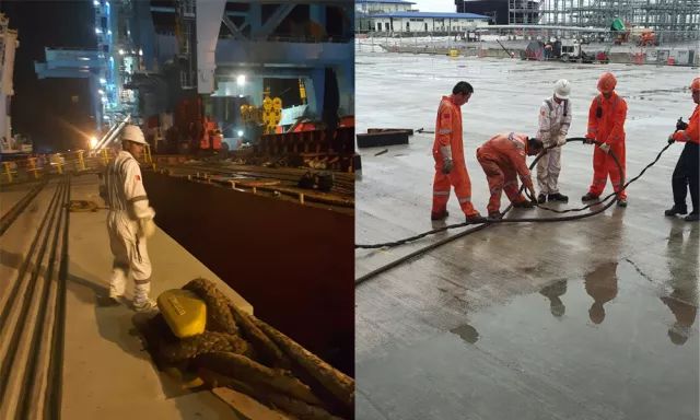 2月22日晚,當(dāng)最后一臺(tái)輪胎吊順利卸船上岸,振華重工馬士基哥斯達(dá)黎加項(xiàng)目組的成員們終于松了一口氣,直接癱坐在碼頭上。度過了一個(gè)又一個(gè)“腥風(fēng)血雨”的不眠夜后,在哥斯達(dá)黎加的加勒比海岸,振華重工現(xiàn)場(chǎng)交機(jī)小組成功抗擊涌浪,將3臺(tái)岸橋和7臺(tái)輪胎吊安全卸船上岸。