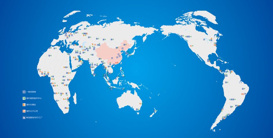 徐工在全球擁有40多家分支機(jī)構(gòu),300家經(jīng)銷商,出口覆蓋全球178個國家和地區(qū)