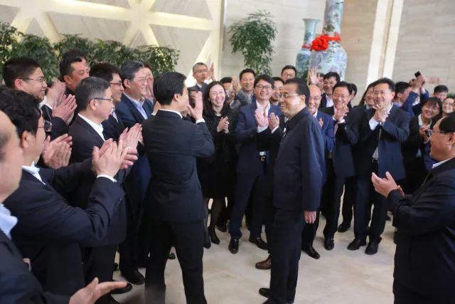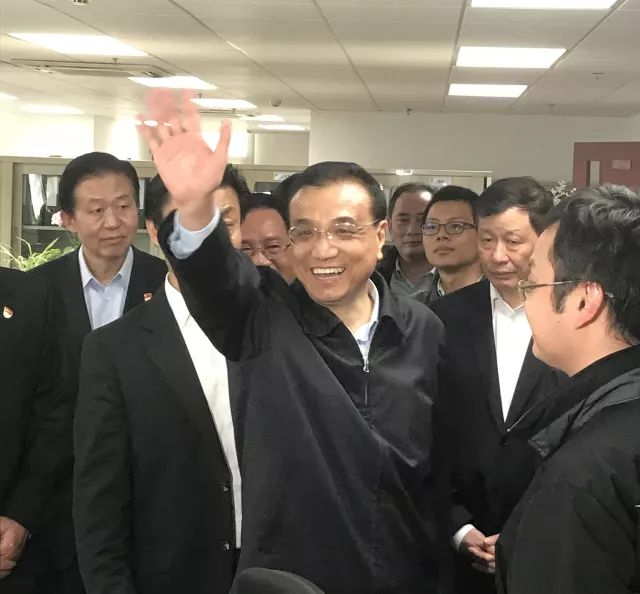 在振華重工的總部大廳,得知總理來(lái)了的振華人早已聚集起來(lái)。結(jié)束考察之際時(shí),李克強(qiáng)來(lái)到人群中,親切地與他們握手致意。