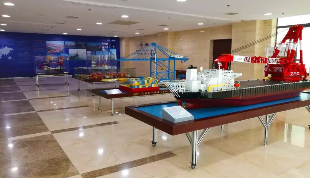 在一樓大廳,一臺(tái)臺(tái)模型林立擺放,從海工核心配套件到整機(jī)運(yùn)輸船,從大國(guó)重器到系統(tǒng)集成碼頭,展現(xiàn)出振華重工作為裝備制造領(lǐng)軍企業(yè)的勃勃生機(jī)。