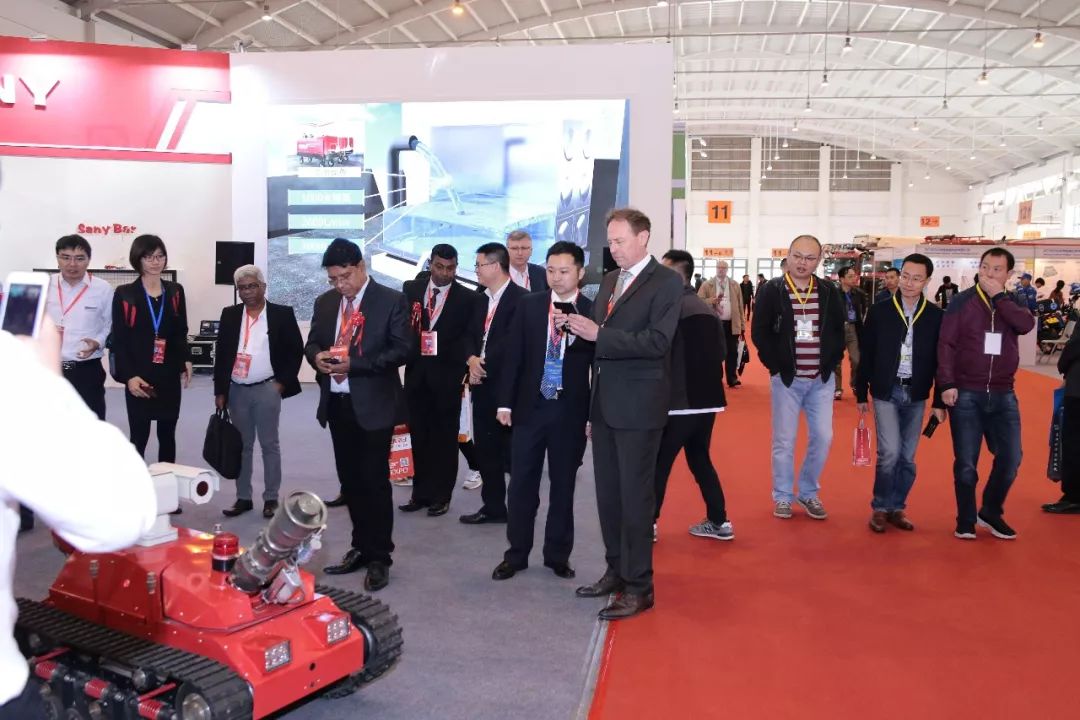 (來自東南亞、南亞以及全國各地的客人紛紛駐足在三一重工消防設(shè)備前觀賞)