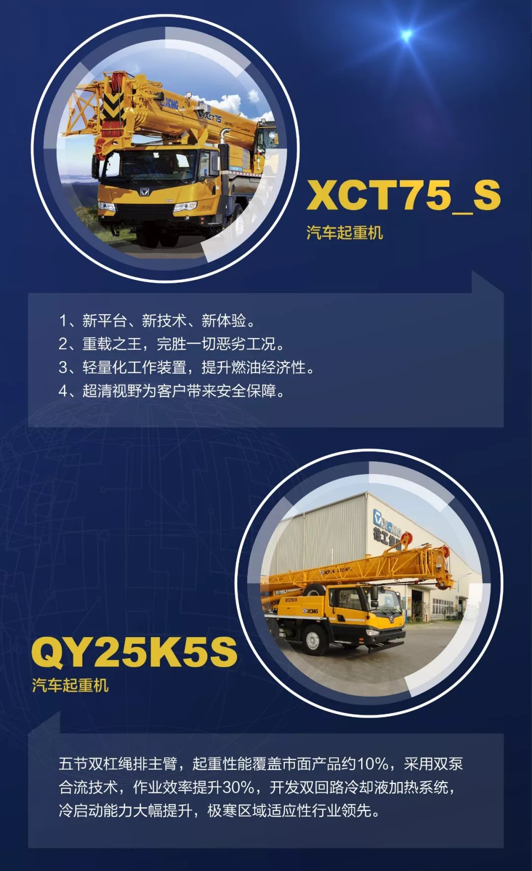 公司的主導產(chǎn)品SQ1-SQ50系列折疊臂及直臂式隨車起重機已形成完善的產(chǎn)品型譜。并基于人機工程學原理、最新的自主核心技術等,率先開發(fā)出新一代K系列隨車起重機產(chǎn)品,起重機通過變形設計及擴展,廣泛用于船運、鐵路、非開挖等行業(yè);公司獨立開發(fā)的QJ7-QJ18系列橋梁檢測車,具有自主知識產(chǎn)權,達到當代國際一流水平;系列高空作業(yè)車、特種環(huán)衛(wèi)車輛也快速形成了豐富的產(chǎn)品型譜,為“市場國際化、產(chǎn)品多元化”發(fā)展戰(zhàn)略奠定了堅實的基礎。