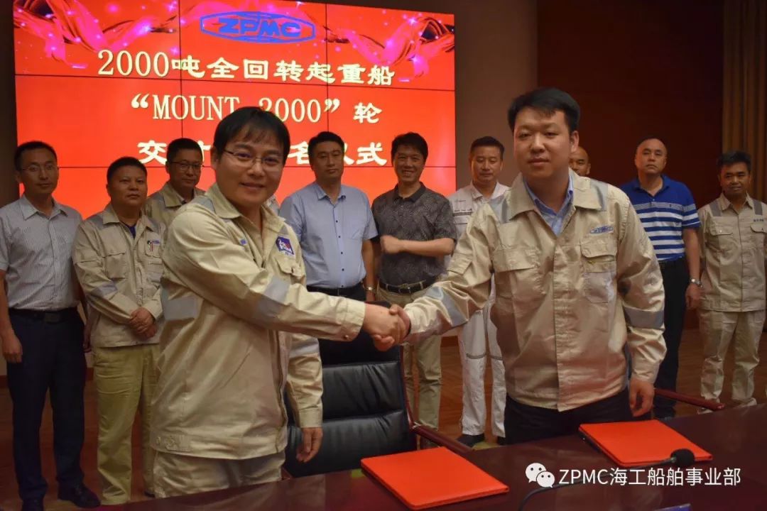 6月11日,由振華重工自主設計研發(fā)的“MOUNT2000”輪全回轉起重船在長興分公司舉行交付暨命名儀式。振華重工、DNV-GL船級社、上海船舶運輸研究所等單位相關人員出席儀式。
