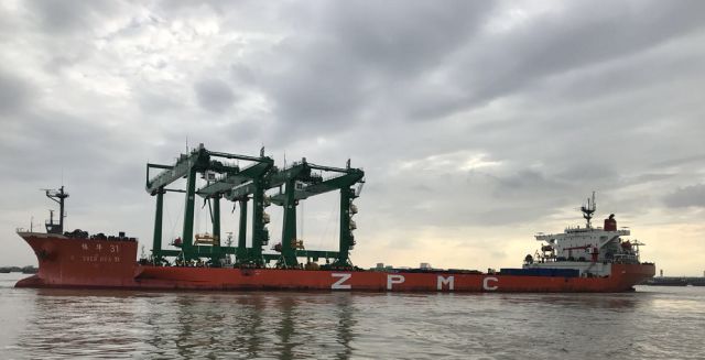 6月10日,振華重工為希臘、廣州、法國、菲律賓四地碼頭設(shè)計建造的岸橋同時卸船。該境況在公司卸船史上實為罕見。