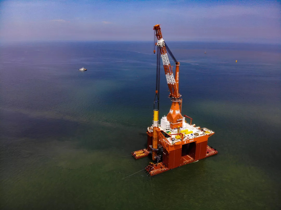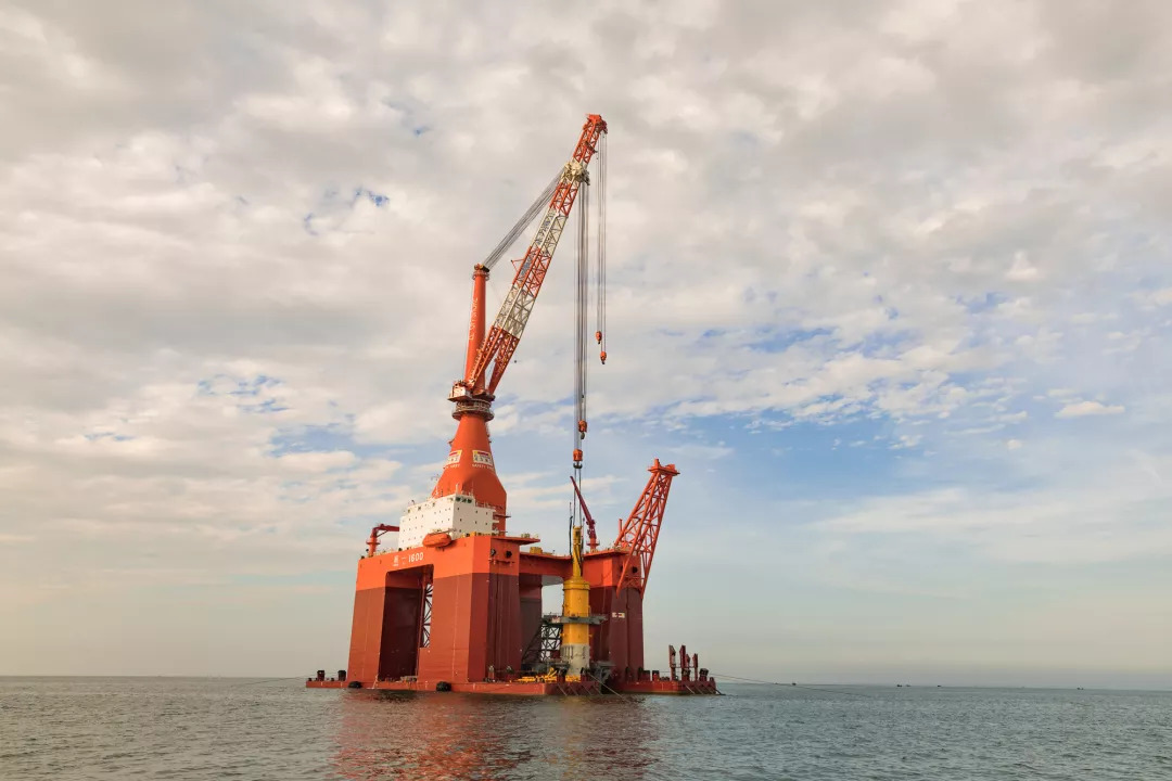 8月22日夜,隨著最后一聲錘擊的結(jié)束,75米多長(zhǎng)的巨大樁體深深地扎入海床,標(biāo)志著振華重工所屬龍?jiān)凑袢A完成廣東粵電湛江外羅海上風(fēng)電項(xiàng)目第4根風(fēng)機(jī)基礎(chǔ)的打樁作業(yè)。