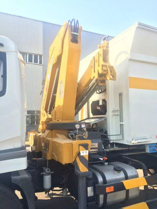 起吊裝置臂體采用六邊形截面技術(shù),抗彎能力強,其獨特的三點橋浮動結(jié)構(gòu),能有效降低車輛行駛時底盤大梁所承受的附加壓力,可實現(xiàn)360度連續(xù)回轉(zhuǎn),吊機可吊5m3容積的地埋桶,吊機吊桶的最大工作幅度可達7.4m。同時為豐富產(chǎn)品多元化需求,吊裝式垃圾車配置掛桶機構(gòu),能夠?qū)崿F(xiàn)標準垃圾桶的上料和傾倒。