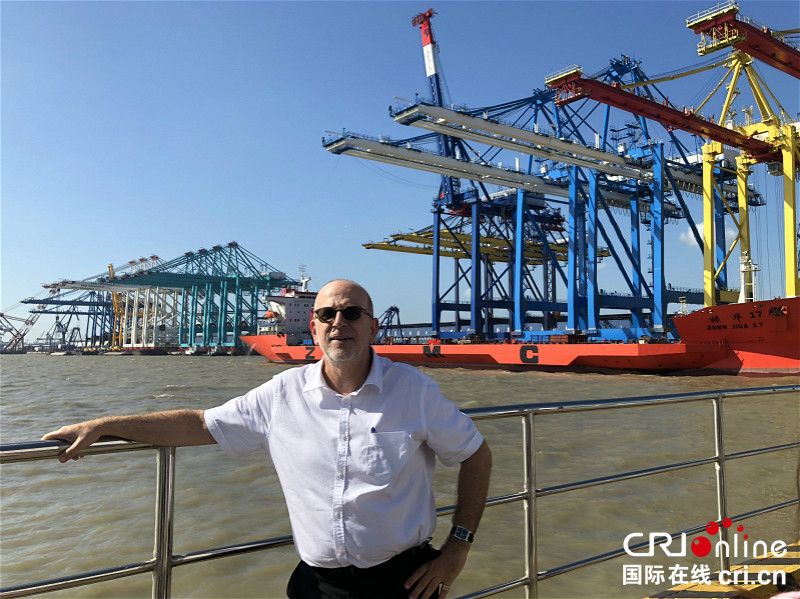 代表團(tuán)團(tuán)長、以色列交通廣播前臺(tái)長、知名政治評(píng)論員亞隆·德克爾在碼頭參觀并拍照留念。