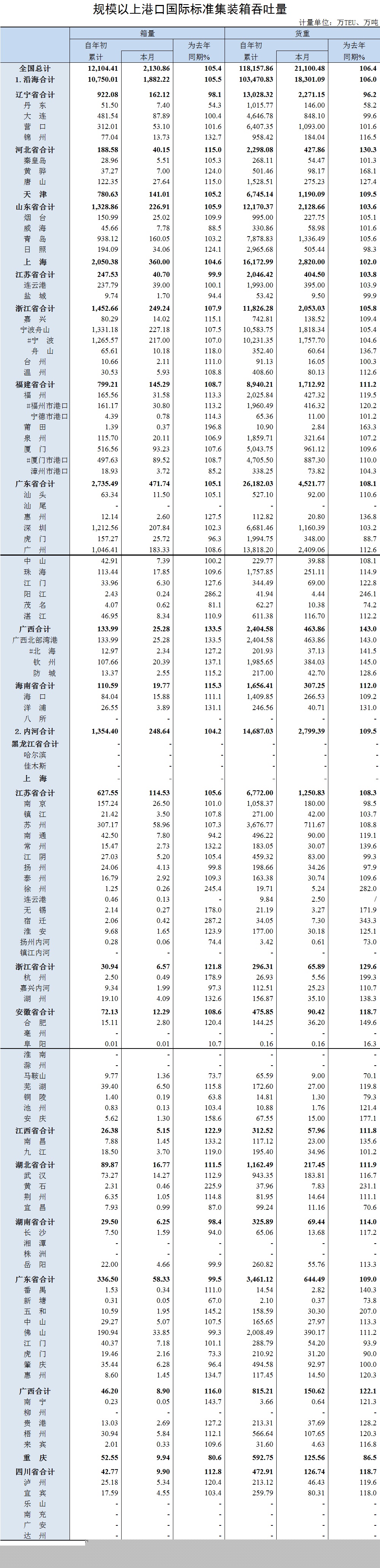 2018年6月規(guī)模以上港口國際標(biāo)準(zhǔn)集裝箱吞吐量
