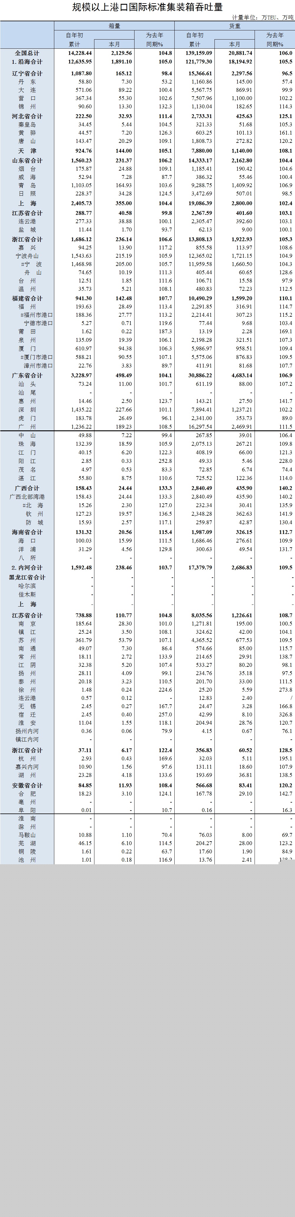 9月全國港口貨物吞吐量為10.5億噸,同比上漲6.8%;全國港口外貿(mào)貨物吞吐量3.3億噸,同比增長7.3%;全國港口集裝箱吞吐量2063.92萬TEU,...