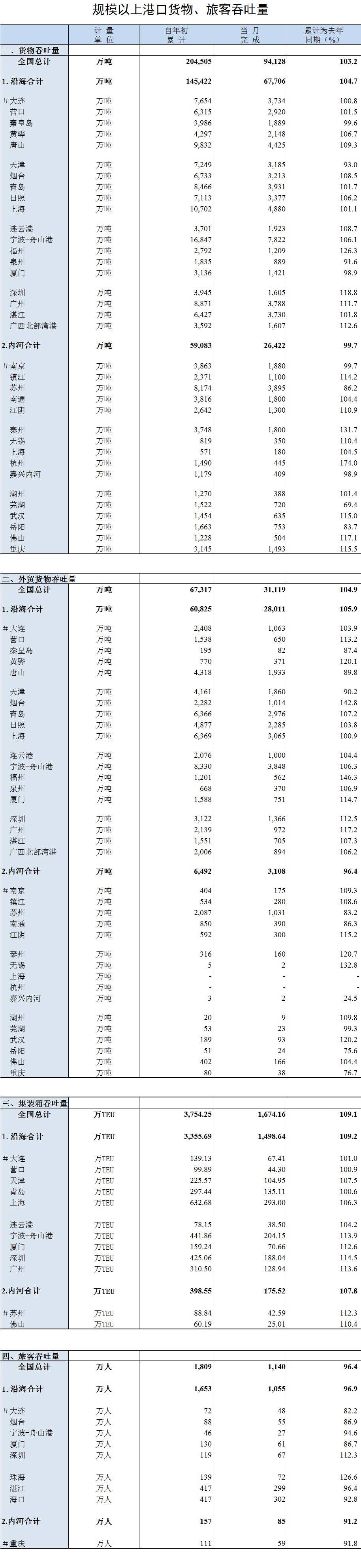 2018年2月規(guī)模以上港口貨物、旅客吞吐量