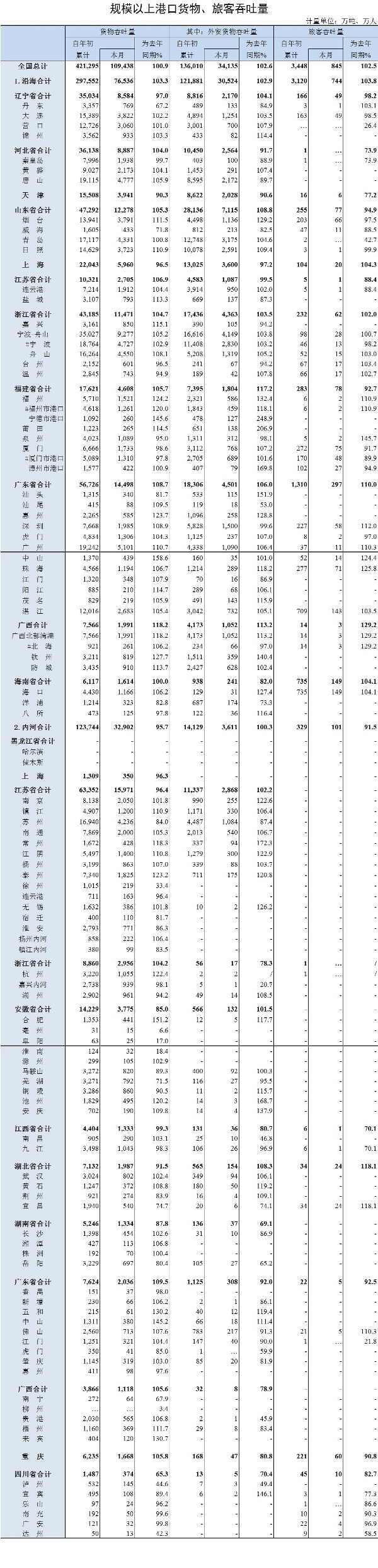 2018年4月規(guī)模以上港口貨物、旅客吞吐量