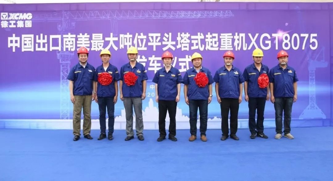 2018年9月19日,中國出口南美最大噸位平頭塔式起重機XGT8075-40發(fā)車儀式在徐工塔機的徐州制造基地隆重舉行。