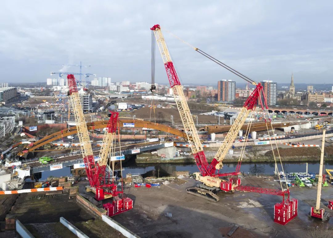 作為英格蘭北部主要鐵路建設(shè)項(xiàng)目的一部分,蘇格蘭承包商Weldex使用兩臺(tái)利勃海爾履帶式起重機(jī)完成主要施工階段的工作:2臺(tái)履帶式起重機(jī)完成了在曼徹斯特的Irwell河上560噸拱形橋的抬吊工作,新的鐵路橋?qū)⑦B接該市的皮卡迪利和維多利亞車(chē)站。