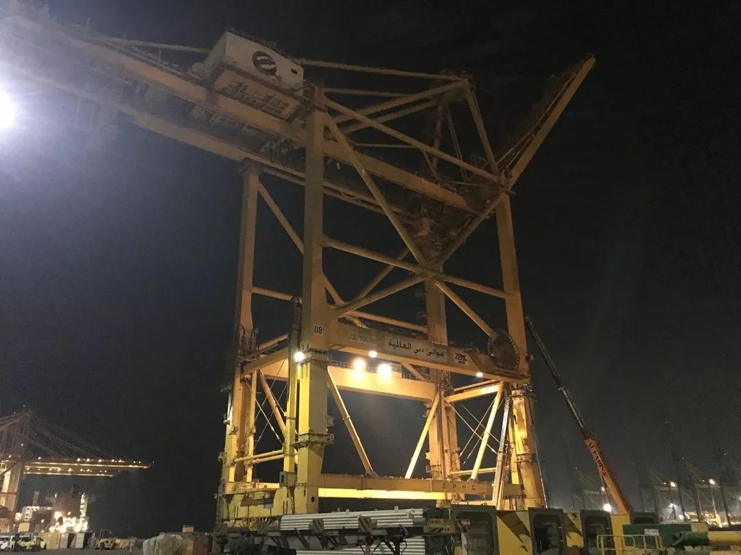 該岸橋位于阿聯(lián)酋迪拜T2碼頭,此次加高采用了振華重工最新研發(fā)的鋼絞線式提升裝置,提升高度為10.5米,提升重量為1950噸,是目前世界上提升重量最大的加高項目。