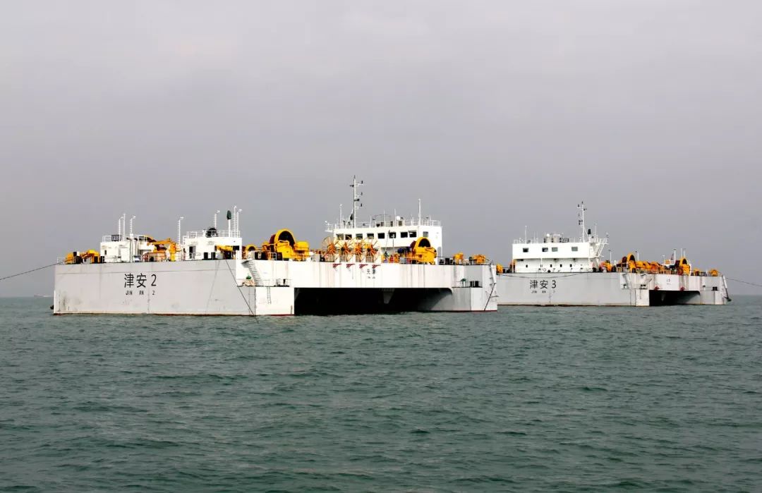 為了解決隧道沉管施工的難題,振華重工對比國內(nèi)外沉管隧道施工技術(shù),自主研發(fā)設(shè)計了隧道管節(jié)沉放和定位設(shè)備——管節(jié)沉放船“津安2號”、“津安3號”,該船是國內(nèi)首創(chuàng)、世界出運能力最大、功能最先進的該類施工專用船舶,于2012年2月開工,同年11月交付現(xiàn)場,創(chuàng)下了國內(nèi)工程船舶的最短建造紀錄。