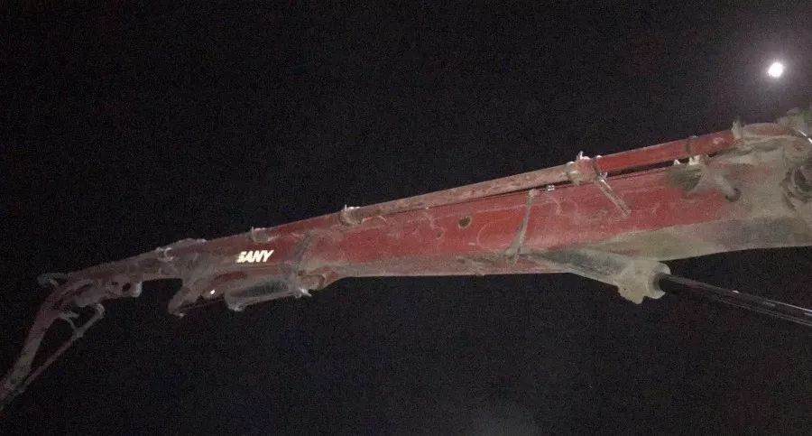 夜深露重,又經過一個多小時的等待后,客戶拿到配件趕回現(xiàn)場。工程師重新上陣,趕在天亮之前終于將新臂架泵裝配好。待命的水罐車立刻上前,終于趕在混凝土凝固之前,將泵車洗干凈。