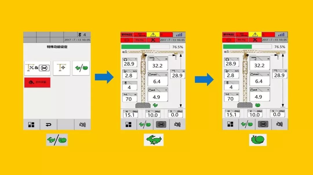 蝸速控制技術(shù):通過蝸速一鍵切換指令,使慢就位速度更低、吊裝作業(yè)更加精準(zhǔn),精確到毫米級