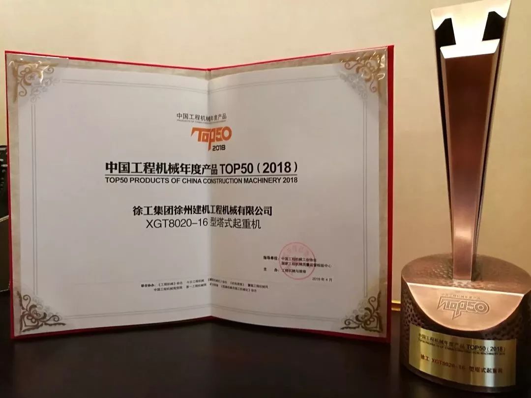 XGT8020-16塔機(jī)榮登中國工程機(jī)械2018年度產(chǎn)品TOP50強(qiáng)榜單