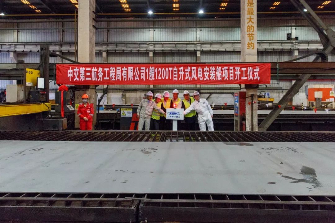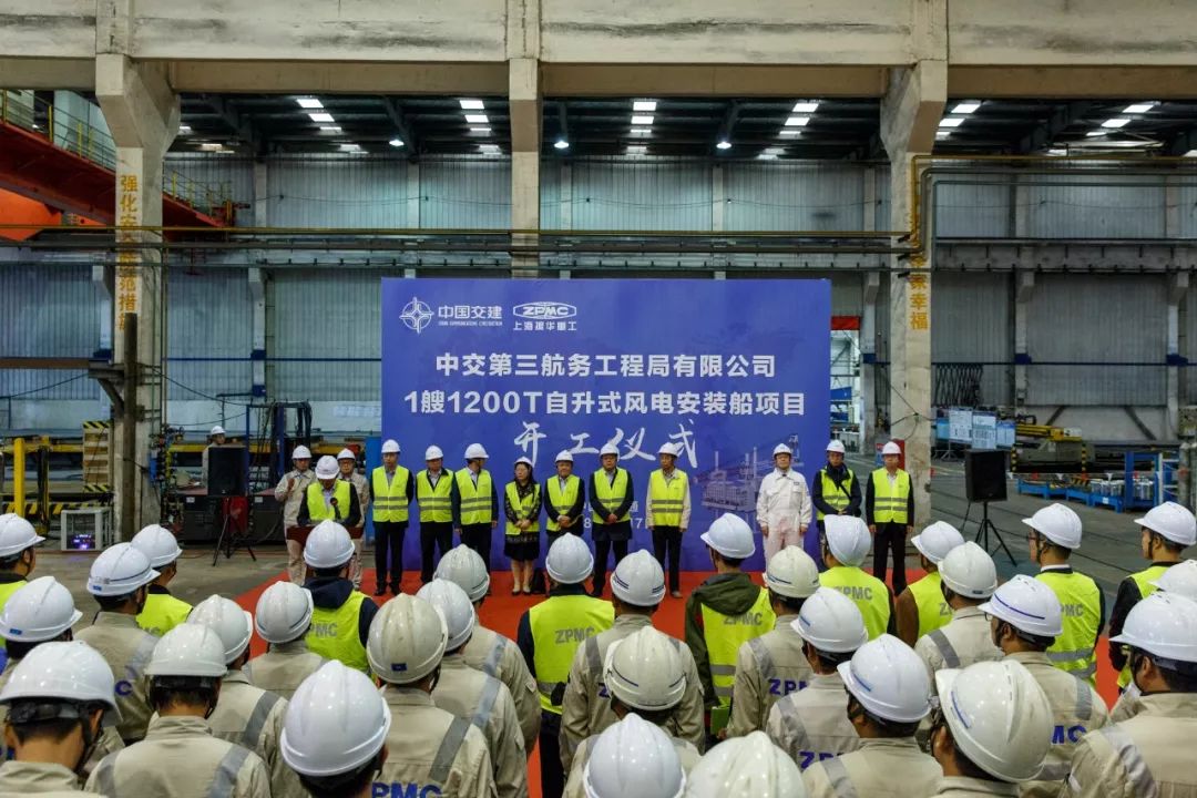 11月7日,振華重工為中交三航局建造的1200噸自升式風(fēng)電安裝船在振華重工海工平臺事業(yè)部正式開工。