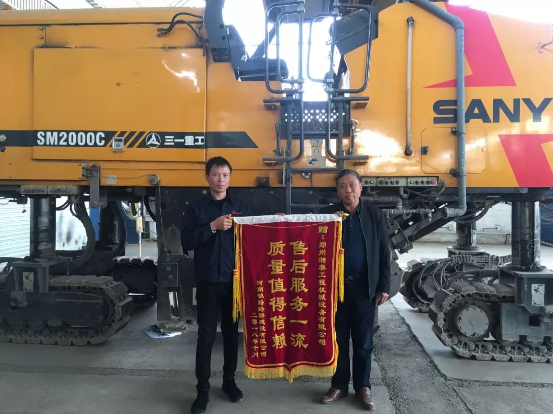 劉國(guó)慶的服務(wù)態(tài)度也打動(dòng)了客戶(hù),在現(xiàn)場(chǎng)為他授予了錦旗,以表感謝。此項(xiàng)目負(fù)責(zé)人尚益民說(shuō)道:“三一鄭州湘泰工程機(jī)械設(shè)備有限公司營(yíng)銷(xiāo)、服務(wù)在這次高速公路建設(shè)中全力配合我司工作,促使工程保質(zhì)、保量完成,豫西服務(wù)工程師劉國(guó)慶積極參與工程設(shè)備技術(shù)服務(wù)售后工作,保證設(shè)備的正常運(yùn)轉(zhuǎn)。高速項(xiàng)目?jī)蓚€(gè)工程局也是非??隙ㄈ辉O(shè)備產(chǎn)品質(zhì)量與售后服務(wù)!”