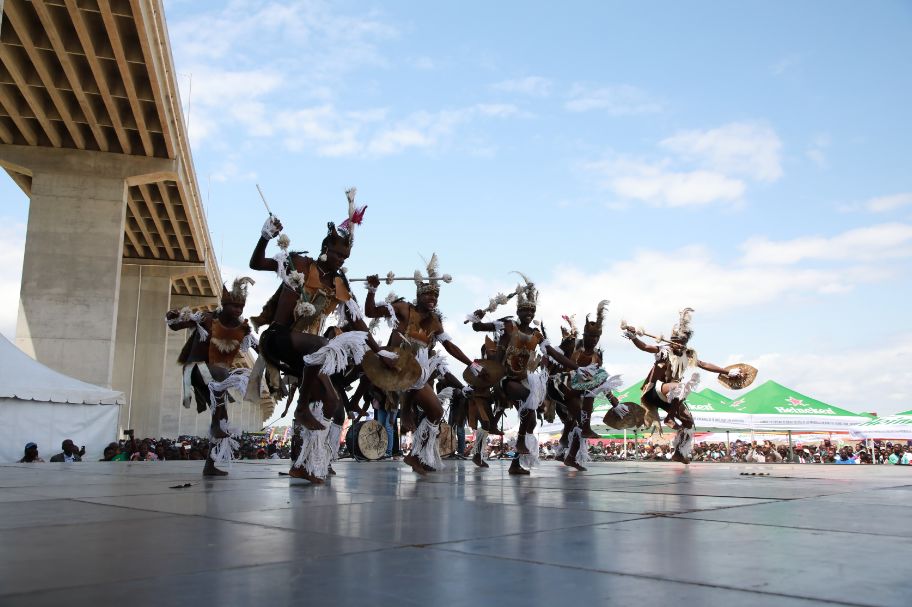 莫桑比克總統(tǒng)紐西攜夫人、馬普托市長(zhǎng)西芒戈等政府部門(mén)官員以及中國(guó)駐莫桑比克大使蘇健等各國(guó)外交使節(jié)出席儀式,在莫中資機(jī)構(gòu)代表和當(dāng)?shù)孛癖姷扔?000人參加慶典活動(dòng)。