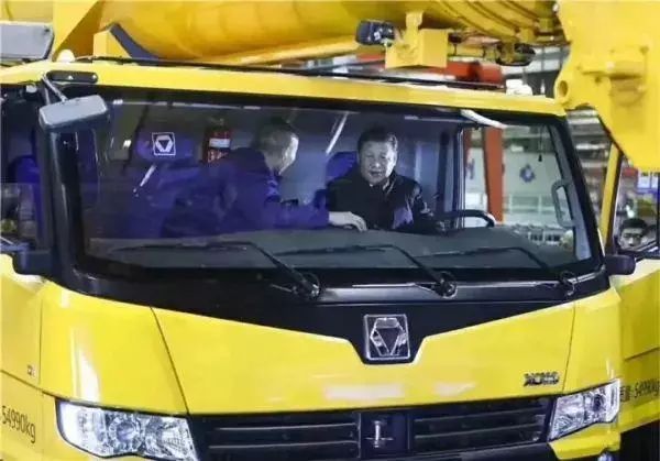 習近平總書記坐進剛下線的XCA220型全地面起重機駕駛室