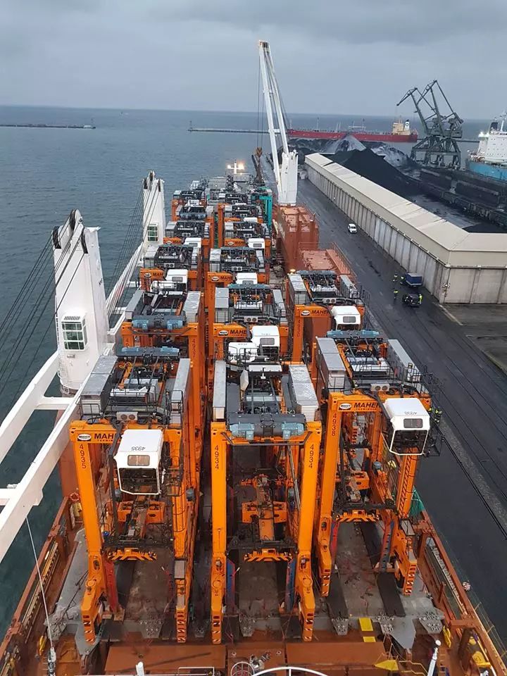 此批設(shè)備屬于美國馬赫碼頭向卡爾瑪訂購的26臺跨運車訂單中的第一批交付設(shè)備,準備前往新澤西港。