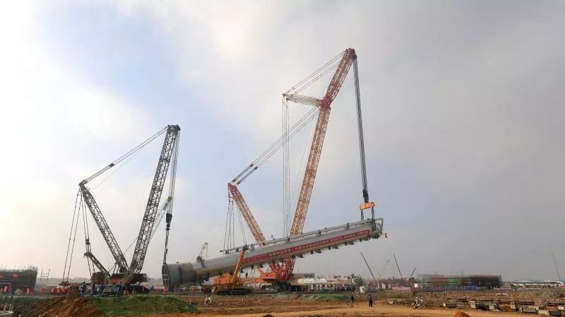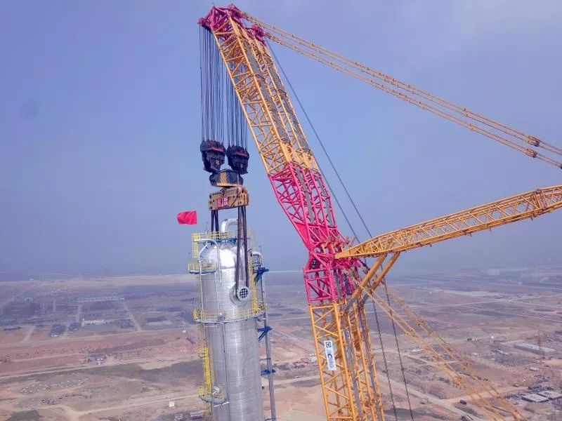 2019伊始,該項(xiàng)目迎來了難度系數(shù)最高吊裝任務(wù)——蒸汽裂解裝置2號丙烯塔吊裝。據(jù)了解,2號丙烯塔塔體直徑6.804米,安裝高度達(dá)到108.6米,主吊起重量達(dá)到1435噸,是中科煉化一體化項(xiàng)目工程中體積最大、高度最高、吊裝難度最大、吊裝要求最嚴(yán)格的大型超限設(shè)備,是整個(gè)大件吊裝運(yùn)輸工程中的“重中之重”。