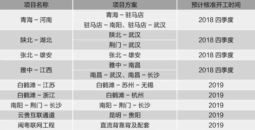 2014年至2017年,核準(zhǔn)開工的12條特高壓通道已基本竣工。新一輪特高壓建設(shè)周期在2018年下半年開啟,共預(yù)計(jì)線路長度共計(jì)11692km,整體估算總投資規(guī)模在2000億左右,變電站、換流站等設(shè)備投入為40%-50%。