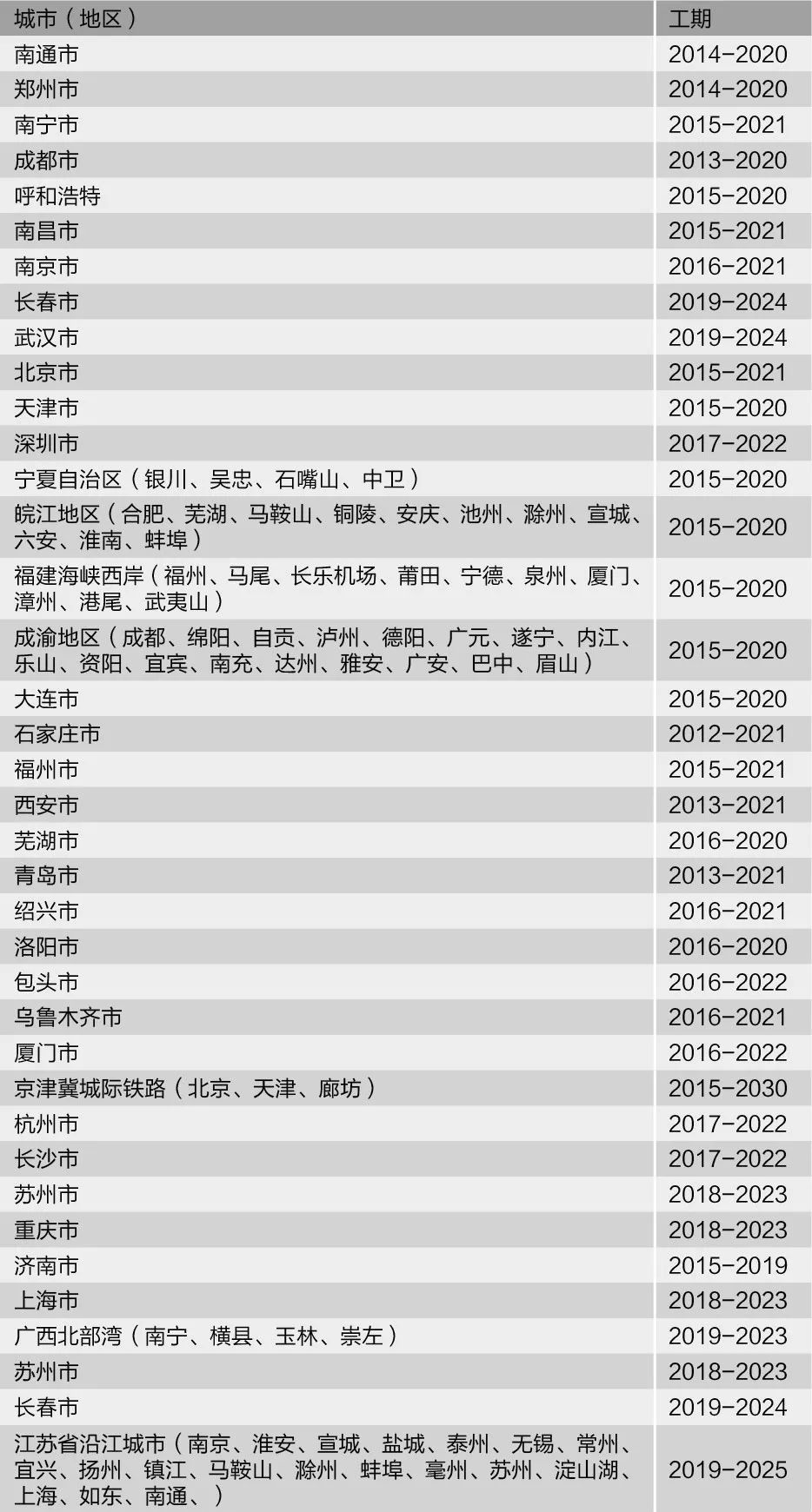 到2019年初,“十二五”以來國家批準(zhǔn)的城市軌道交通計(jì)劃仍然還有38個項(xiàng)目在建。2018年12月,國家加緊了軌道交通的審批進(jìn)度,一口氣批準(zhǔn)了重慶、濟(jì)南、杭州、上海、沈陽、廣西北部灣、長春、江蘇省沿江城市群、武漢一共1萬億的項(xiàng)目投資計(jì)劃,給各位吊裝伙伴送上了最棒的新年禮物。