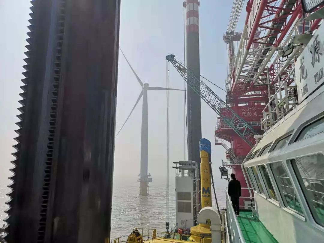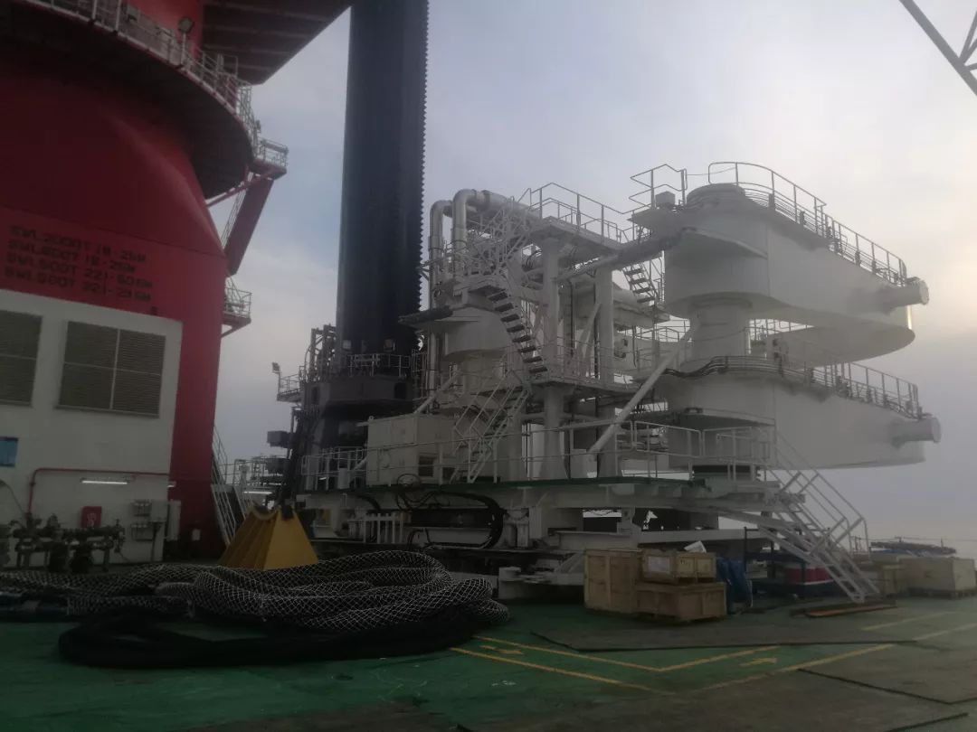 到目前為止,“龍源振華叁號”不負眾望,共成功打樁8根、安裝風機23臺。