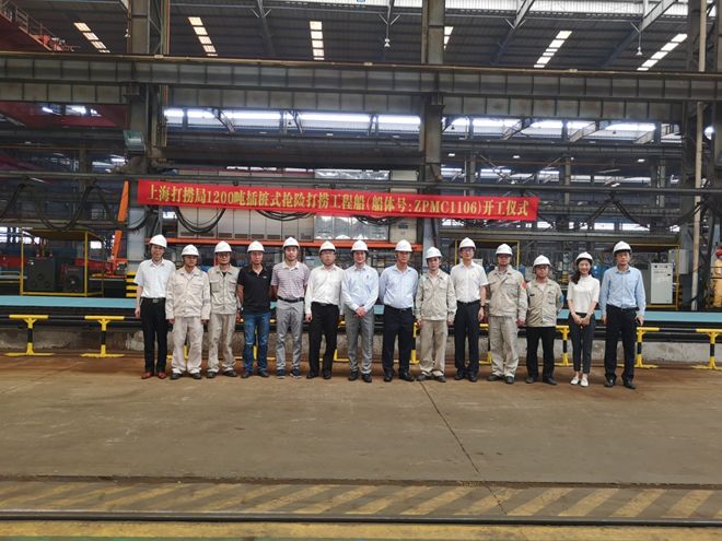 6月6日, 振華重工為上海打撈局建造的1200噸插樁式搶險打撈工程船項目在海工集團啟東海洋公司順利舉行開工儀式。