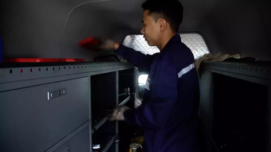 因?yàn)楝F(xiàn)在工程項(xiàng)目多,這些設(shè)備整天泡在工地里,每天的工作強(qiáng)度非常大,難免會(huì)有些問(wèn)題。他們通過(guò)儀器的檢測(cè)可以診斷出車子的一些故障隱患,如需要更換零配件的,盡量在現(xiàn)場(chǎng)更換。這樣就確保了設(shè)備能正常運(yùn)轉(zhuǎn),保證項(xiàng)目的施工進(jìn)度。上午忙完之后,趁著客戶去吃飯,他在車?yán)锎蛄隧?,長(zhǎng)年在戶外工作,讓他們這些售后人員有了很強(qiáng)的適應(yīng)能力,相比外面的暴曬和泥濘的工地,工具車?yán)锵鄬?duì)來(lái)說(shuō)已經(jīng)是很舒服的地方了。