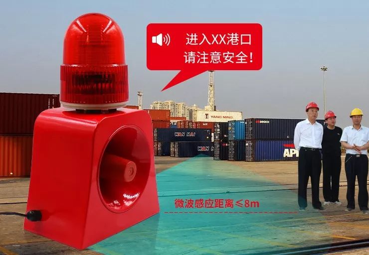 在港口或者碼頭的各個(gè)入口和特殊的地方安裝這款聲光報(bào)警器,實(shí)時(shí)對(duì)進(jìn)入港口的人或者車輛進(jìn)行監(jiān)測(cè)、語(yǔ)音提示,語(yǔ)音內(nèi)容例如:您已進(jìn)入某某港口,請(qǐng)注意港口類的一些安全信息,注意您的安全等。