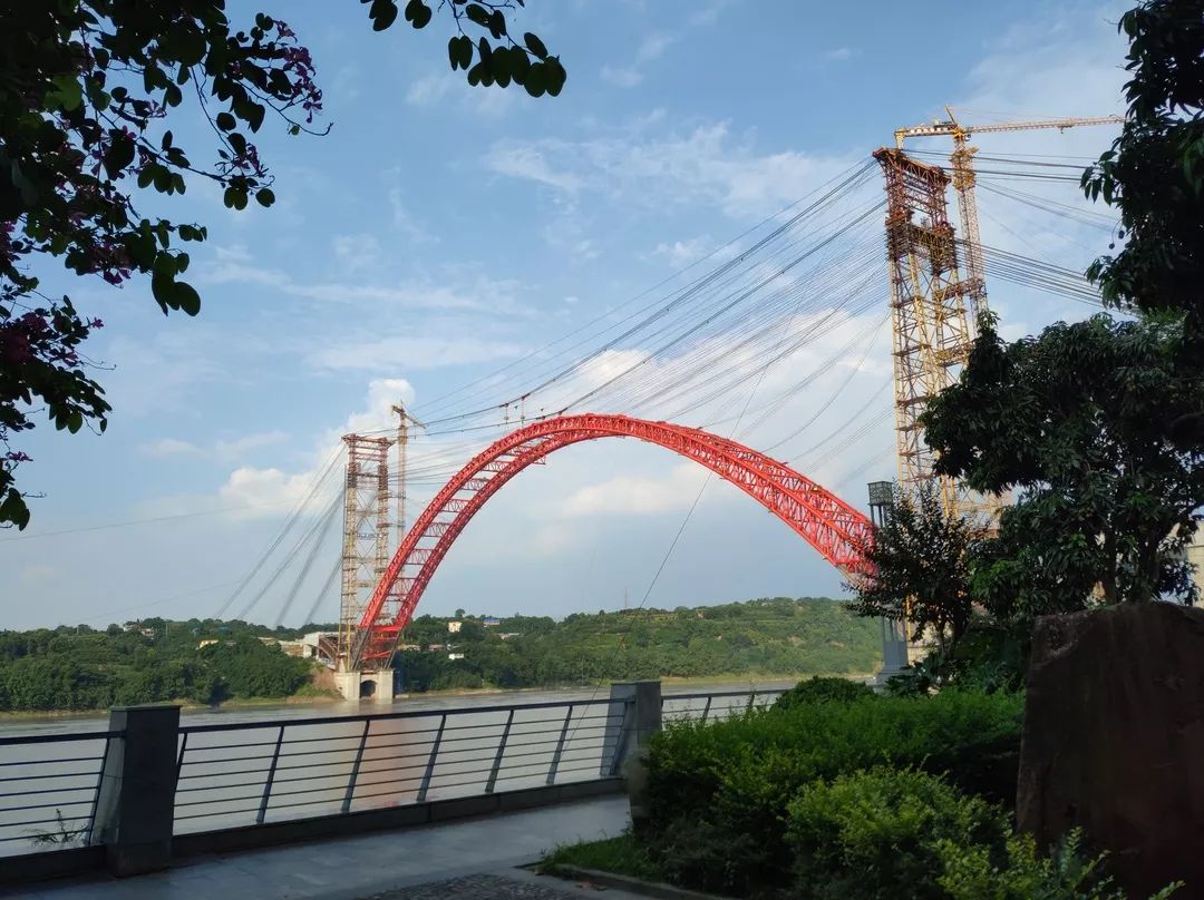 四川合江長江大橋是國內(nèi)首座、世界最大跨徑飛燕式鋼管混凝土系桿拱橋,連接金沙江兩岸,由巨大的弧形拱肋和橋梁主體組成,全長1420米,主跨507米,二公局、振華重工參與建設(shè)。