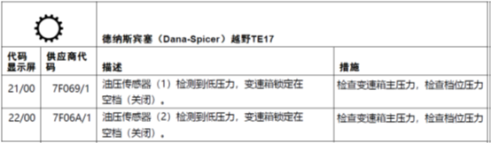 21/00和22/00表示在不同檔位檢測到變速箱油壓低。
