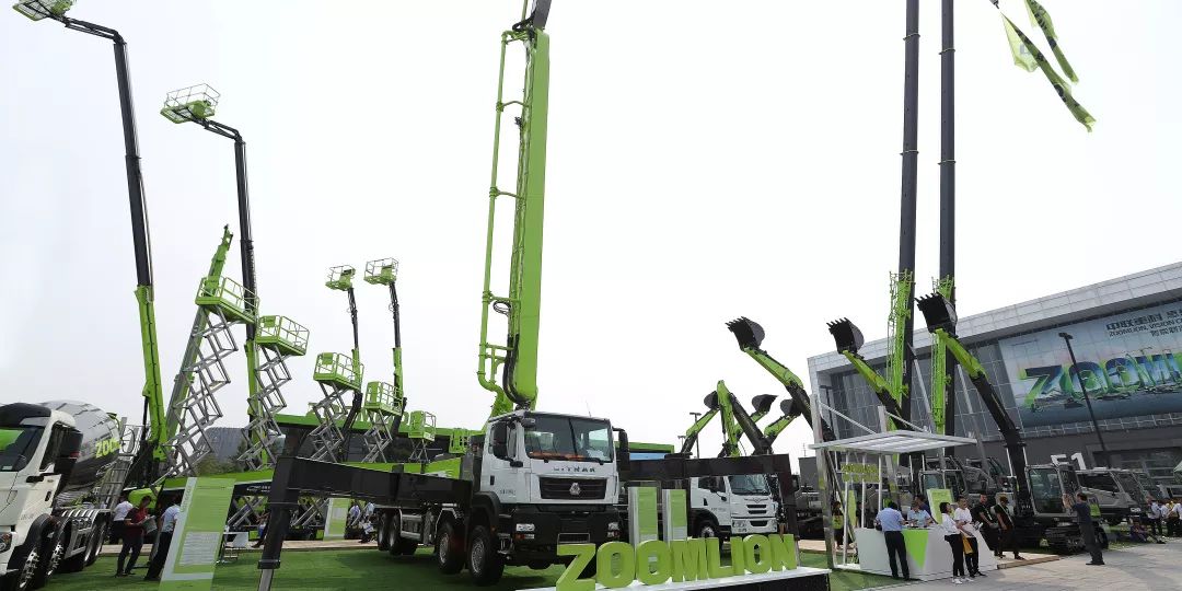 ▲中聯(lián)重科32款產(chǎn)品亮相2019北京工程機(jī)械展