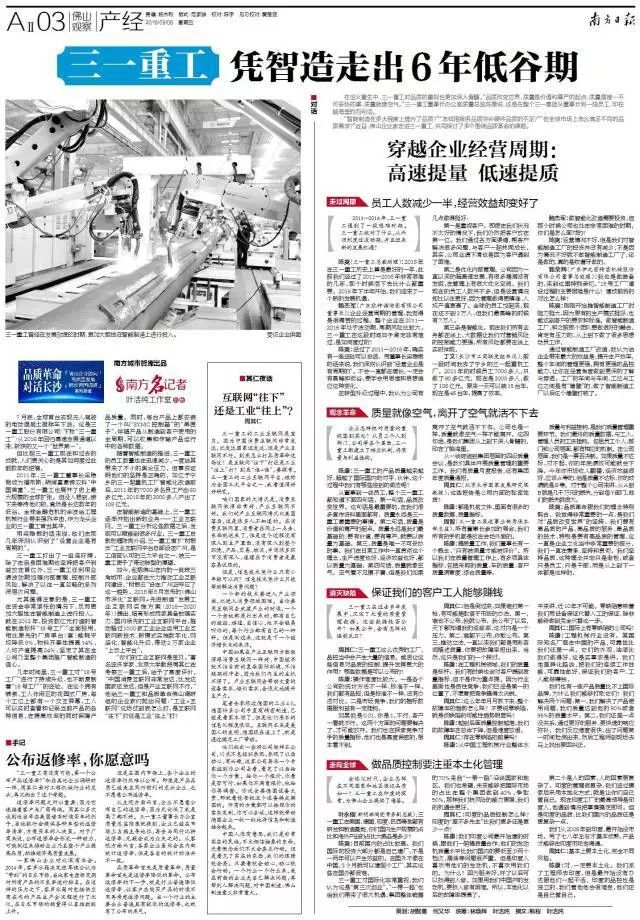 陳爽(三一重工總裁助理):2018年在三一重工歷史上算是最好的一年,此前我們經(jīng)過了2011—2016年非常艱難的幾年,那個時候活下去比什么都重要。2016年下半年開始,我們迎來了一個新的發(fā)展機遇。