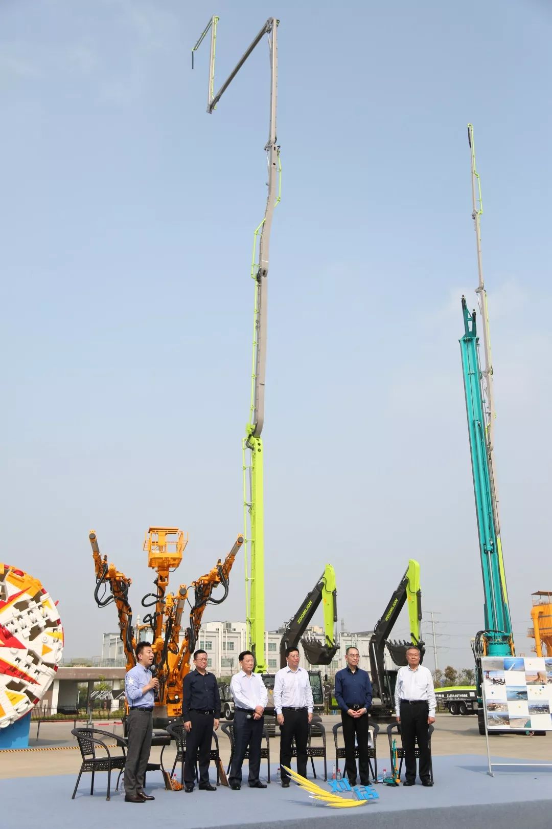 錄制現(xiàn)場,來自四家企業(yè)的高端裝備林立。其中,一臺高聳入云的泵車成為了全場焦點(diǎn)。它是全球最長臂架泵車——中聯(lián)重科101米碳纖維臂架泵車。該車擁有120項(xiàng)專利,其中65項(xiàng)發(fā)明專利,是全球泵車制造的最高水平。代表施工案例包括武漢中心(438米)及長沙九龍倉國金中心(452米)。