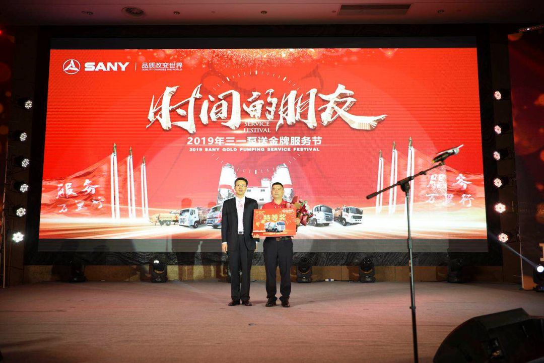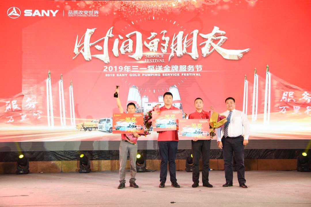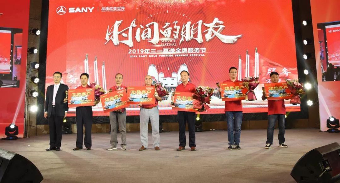 活動現(xiàn)場,2019年“時間的朋友”-三一泵送金牌服務(wù)節(jié)功勛設(shè)備及功勛客戶線上評選結(jié)果榮耀揭曉。在鮮花與獎杯簇擁下,受獎客戶與三一領(lǐng)導(dǎo)合影留念,記錄下這一榮耀時刻。