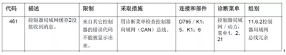 故障代碼461,表示通訊網(wǎng)絡(luò)CAN2沒收到消息。